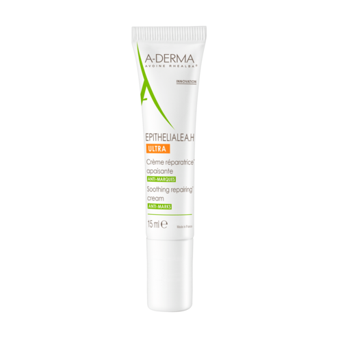 Die Formulierung der EPITHELIALE A.H ULTRA Beruhigenden Reparaturcreme, zu 94% natürlichen Ursprungs, die nach dem Peeling, nach dem Lasern** und auf reepidermisierter, tätowierter Haut getestet wurde, hat eine dreifache Wirkung: Sie fördert die Reparatur*, reduziert Narben und beruhigt die Haut.